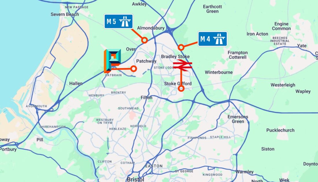 Patchway Studios is perfectly placed in North Bristol – just off the M4/M5, 9 minutes from Bristol Parkway (with fast trains to London in just 75 minutes, every half hour), and only 30 minutes from both Bristol Airport and central Bristol. With quick reach to a diverse range of film locations – including urban, industrial, coastal, and rural backdrops – all within close proximity.